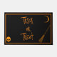 Ein minimalistisches Orange- und Schwarzwurzel-Design mit den eindringlichen Symbolen Halloween, Halbmond, Schädel und Hexenbesen. Für diesen besonderen Halloween-Trick oder eine schöne Dekoration oder Halloween-Party. Mit unserem Halloween Trick oder Treat Türmatte kommen Sie in den geilen Geist! Dieses festliche Geschenk ist perfekt für Halloween-Partys.