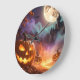 Fröhliche Halloween-Wanduhr mit einem etwas beängstigenden Trick oder Leckerbissen, alter Burg, Vollmond und zartem Jack O' Lantern-Kürbis... wir haben dieses Design entworfen, um das mystische und legendäre Fest auf aufregende Weise zu unterstützen... Lass uns deine Welt färben!!