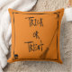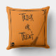 Ein minimalistisches Orange- und Schwarzwurzel-Design mit den eindringlichen Symbolen Halloween, Halbmond, Schädel und Hexenbesen. Für diesen besonderen Halloween-Trick oder ein Leckerbissen oder Halloween-Party. Mit unserem Halloween Trick oder Treat wurf Kissen kommen Sie in den geilen Geist! Dieses festliche Geschenk ist perfekt für Halloween-Partys.