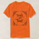Eine gotische magische Grenze mit Schädeln und "trick or treat" in schwarz. Zu Halloween-Kleidung, Kostümen oder Halloween-Party.