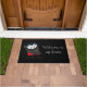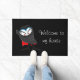 Die Türmatte, die mit einem schwarzen Hintergrund gezeigt werden und ein Halloween Dracula drucken.