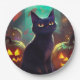 Halloween Tuxedo Katze mit Pumpkins Beängstigend Pappteller