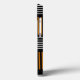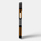 Dieses Handy Gehäuse hat ein modernes Design Mitte des Jahrhunderts, das aussieht wie ein Gewebe mit orangen und weißen Linien auf einem Feld von schwarz.