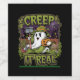 Für ein Halloween-Design stellen Sie sich eine dunkle, unheimliche Nacht vor, in der ein Vollmond hinter verdrillten, nackten Bäumen glüht. Im Hintergrund zeichnet sich ein Spuk Haus ab, dessen Fenster ominös leuchten. Fledermäuse fliegen durch den nebeligen Himmel, während Spinnennetze über die Äste ziehen. Im Vordergrund reihen Kürbisse in bedrohliche Jack-o-Laternen einen verstopften Pfad. Schatten von Gespenstern und Skeletten lauern herum, und Hexen auf Broomsticks steigen über. Die gesamte Szene wirkt kühl und geheimnisvoll, wobei Orangenspritzen aus den Kürbissen den dunklen, gruseligen Tönen der Nacht kontrastieren.