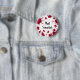 Ein lustiges, verrücktes Button auf dem Knopf zu Halloween oder zu jeder Zeit mit Blut-Spritzern darauf.