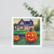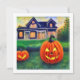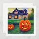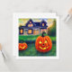 Halloween-Kürbisse mit Kerzenlicht vor einem Haus