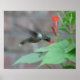 Fotografie eines rubingebeutelten Hummingvogel, der Nektar aus einer roten Morning Glory Blume entfernt.
