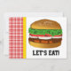 Diese Einladung hat einen Hamburger mit einem Picknickstil-Rahmen und komplett anpassbarem Text. Es ist hervorragend für Koch-outs, Grillabende, Partys, etc...