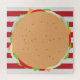 Ein Käseverstärker mit allen Schnitten auf einem rot-weiß gestreiften Hintergrund.