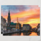 Schönes landschaftliches Foto von Sonnenuntergang auf den Gebäude am Ufer in Hamburg. Die ideale Kulisse für Fotos und Mementos