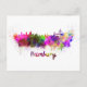 Hamburger Skyline in Aquarellfarben-Spritzern
