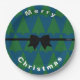HAMbyWhiteGlove aka HAMbWG entworfen, farbenfrohe Weihnachtsbaumen mit einem Band und Bogen-Design, Papierteller. Grün und Aquamarin.