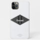 HAMbyWhiteGlove aka HAMbWG entworfen iPhone 11 Fall mit einem Monogram-Bereich und einem benutzerdefinierten Farbhintergrund, wählen Sie einfach die personalize Option, um Ihren Namen und initiale dann anpassen, um die Farbe zu ändern. In Weiß dargestellt.