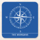 Klassisch blaue Untersetzer mit einem Kompass-Design für ein weißes Schiff und einem anpassbaren Textbereich unten, um Ihren Namen oder Ihre Nachricht hinzuzufügen