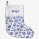 Stilvoll blau-weiß gemusterter Weihnachtsfest Strumpf. Hamptons blaue Blume Boho Daisy auf weißem Hintergrund. Der Strumpf verfügt über eine lustige grafische simulierte Pelztrim, wo Sie Ihren eigenen Namen hinzufügen können.