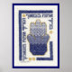 The hamsa, symbol of God's blessings and protection, is worked in shaded blackwork embroidery technique. The accompanying Hebrew words read "Blessed shall you be in your coming, and blessed shall you be in your going" (Deuteronomy 28:6). Profits from the sale of this poster are directed to the Fabrangen Jewish community in Washington, DC.