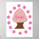 Dieses Poster zeigt ein grafisches Bild eines Kirschbaumes, der mit rosa Blüten bedeckt ist und von einem Kreis hübscher Kirschblütenblüten umgeben ist, die Sakura genannt werden. Dieses Design wurde geschaffen, um das japanische Hanami Festival zu feiern und enthält das Wort Hanami im Kirschbaum. Die Feier markiert den Frühling, während sich die Leute unter den blühenden Kirschbäumen treffen, um ein Picknick zu machen.