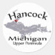 Ein Hancock Michigan Upper Peninsula Plan auf einem Aufkleber.