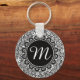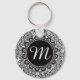 Hand Drawn Black and White Flower Pattern Monogram Schlüsselanhänger