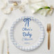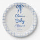 Hand Drawn Blue Gingham Bow Baby Shower Pappteller