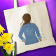 Ehre deinen besten Freund mit der handGezeichnet Denim Jacket Brown Trauzeugin Tote Tag! Diese trendige Tasche zeigt eine handgezeichnet Illustration einer braunhaarigen Frau mit hellblauer Denim-Jacke, auf der die Worte "Trauzeugin" elegant in weißer Schrift auf der Rückseite stehen. Rechts von der Abbildung befindet sich ein anpassbarer Platz für den Namen der Trauzeugin und das Hochzeitstag, der in einem staubblauen, modernen Schriftart angezeigt wird. Diese Tasche ist perfekt als Geschenk für die rechte Braut geeignet und ist ein stilvoller und sentimentaler Sake für Junggeselinnen-Abschiede, Brautpartys und Hochzeitsfeiern.
