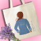 Feiern Sie die zukünftige Braut mit der handGezeichnet Denim Jacket Red Hair Bride Tote Bag! Diese stilvolle Tasche zeigt eine elegante Abbildung einer rot-haarigen Frau, die eine hellblaue Denim-Jacke trägt, wobei das Wort "Bride" auf der Rückseite schön in weißen Buchstaben geschrieben ist. Rechts von der Abbildung befindet sich ein anpassbarer Raum für den Namen der Braut und das Hochzeitstag, der in einem staubblauen, modernen Schriftart angezeigt wird. Ideal für Junggeselinnen-Abschiede, Brautpartys oder als nachdenklicher Sake verbindet diese Tasche trendigen Stil mit einer persönlichen Touch.