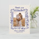 Celebrate your special day and express heartfelt gratitude with this wedding thank you card featuring a whimsical, hand-drawn scribble style frame and personalized photo of the happy couple. Perfect for couples who want to share a romantic moment from their big day while thanking guests for their presence, love, and generous gifts. The front design highlights your favorite wedding photo surrounded by playful blue doodle-style flourishes and elegant handwritten typography, while the back continues the artistic theme with a fun sketch of a champagne tower and your personal message. The cream background and blue ink create a timeless look with a modern twist, making this card suitable for rustic, boho, minimalist, or classic wedding themes. Ideal for couples who love personal, creative stationery with a dash of fun and flair. Professionally printed on quality cardstock, this card is a keepsake your guests will cherish. Custom names and dates add that perfect finishing touch to your post-wedding gratitude.