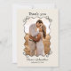 Cream and black wedding thank you cards with doodle-style illustrations blend heartfelt sentiment with trendy hand-drawn design. Featuring a photo of the couple on the front, framed by a playful ribbon-style doodle border, this card adds a personal and romantic touch. The back includes a coordinating doodle of a champagne tower with a printed thank you message that’s both sincere and stylish. The cream background contrasts beautifully with the charcoal black sketches and text, giving the card a timeless, yet modern look. Perfect for couples who want their stationery to feel warm, personal, and design-forward, this card pairs beautifully with other black and cream doodle-themed wedding pieces. Ideal for post-wedding gratitude, these cards make a meaningful keepsake while staying on-trend with the current love for whimsical line art and minimalist palettes.
