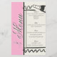 This sleek minimalist design is elegant and perfect! The clean lines make the day all about you while showcasing class and attention-to-detail. The front showcases script calligraphy text, apart from the word "menu" the text is fully customizable. Other tiny details apart from the light and dark color block style are the sweet little hand drawn details. The wine bottle, and bow on the front. If you want to change the word "Menu", reach out and let me know what you'd like. This design has space for all the basics, AND you have space to add more if you need it. The front is beautifully framed and the back has beautiful pin stripes and a tiny frame where you can add the initials of your couple, along with a sweet hand-drawn style strawberry.