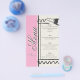 Design features pink and cream along with black and white details.