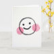 This greeting card features a big smiley face centered on a plain white background. The face is a simple circle drawn with a thick black line that looks a bit like crayon, with a slightly uneven edge. Inside, there are two solid black dot eyes and a small curved smile that feels friendly and calm. On each cheek, there’s a large pink blush mark with visible crayon-like strokes, making the expression look sweet and a little shy ❤️. There’s no other character or object in the scene, so all the attention stays on that warm, happy face. The card does not show any printed message or lettering anywhere on the front, leaving space for your own note 💌. It’s an easy way to send a small reminder that someone is cared for, especially with a little treat like 🍫.