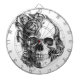 Hand gezeichneter Rosenschädel in Schwarzweiss. Dartscheibe