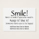 Pour le coût d'un paquet de cartes de visite / profil, gardez un sourire à portée de main pour distribuer à un ami ... ou au hasard à quelqu'un qui semble en avoir besoin. Cela pourrait faire une différence dans la vie de quelqu'un. J'ai mis ça sur le stock blanc de base. Jouez avec les stocks disponibles. Zazzle offre des remises sur quantité. Bon appétit ! Merci! Souriez ... ; )