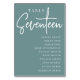 Einfache und schicke Tischnummer-Karten in staubigen aquamarinen und weißen Farbtönen geben bei Ihrer Hochzeit oder Veranstaltung eine elegante Note. Das Design enthält "Table [number]" in einem spannenden Mix aus klassischer Serif und handgeschriebenem Skriptsatz, darunter einzelne Gastnamen. Design wiederholt sich auf beiden Seiten. Einzelne nummerierte Karten werden separat verkauft; bestellen Sie jede Tischnummer einzeln aus unserer Sammlung.