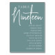 Einfache und schicke Tischnummer-Karten in staubigen aquamarinen und weißen Farbtönen geben bei Ihrer Hochzeit oder Veranstaltung eine elegante Note. Das Design enthält "Table [number]" in einem spannenden Mix aus klassischer Serif und handgeschriebenem Skriptsatz, darunter einzelne Gastnamen. Design wiederholt sich auf beiden Seiten. Einzelne nummerierte Karten werden separat verkauft; bestellen Sie jede Tischnummer einzeln aus unserer Sammlung.