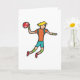 Handball player leaps with ball in hand ready to throw and score a goal.