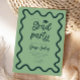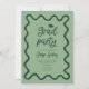 Funky Graduation Party Einladungskarte mit handgezeichnetem, schnörkelhaftem und gewelltem Rahmen. Grüner Hintergrund.