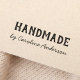 Briefmarke aus Gummi mit dem Text "Handmade" und dem anpassbaren Namen unten in einem handgeschriebenen Schriftart.