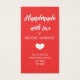 Handgefertigt mit Liebe Geschenketiketten in Visitenkartengröße, wo Sie Ihren Namen und Waschanleitung für Ihr handgefertigtes Objekt hinzufügen können. Ein niedliches kleines Herz trennt Ihren Namen von den Anweisungen, die auf rotem Hintergrund in Weiß geschrieben sind. Die Rückseite weist ein schicke Punktmuster auf.