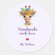 Handgefertigt mit Liebe Niedliche Giraffe mit Blum Runder Aufkleber