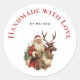 Handgefertigt mit Liebe Retro Santa Claus und Rent Runder Aufkleber