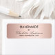 Ein Label für Ihre handgefertigten Produkte oder Kunstwerke, das Ihren Namen und Ihre Website-Adresse personalisieren und hinzufügen kann. Rose goldener Hintergrund, schwarzer Text.