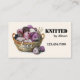 Eine Visitenkarte mit einem Aquarellkorb mit Wolle. Ideal für eine berufliche Arbeit mit Wolle, z.B. Stricken, Häkeln oder anderen Kunsthandwerken. Auf der Rückseite sind alle Werkzeuge, die Sie benötigen, wie z.B. eine Logo-Vorlage, QR-Code-Vorlage sowie Social Media Icons. Sie können ersetzen oder löschen, um Ihre Bedürfnisse zu Anzug.