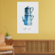 Handgemalt Wasserfarbe Vintag Blue Kaffeekanne Poster
