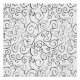 Handgemalte schwarze Kurven drehen sich, treffen und divergieren in diesem allumfassenden Wiederholdesign auf weißem Hintergrund. Die kurvigen Linien enden mit Scrolldesigns. Das dekorative Bild ist sowohl frei fließend als auch zart. Aquarellmalerei, gescannt. Copyright © 2014 Claire E. Skinner. Alle Rechte vorbehalten.