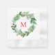 Handgemalte Wasserfarbenwelt Wreath mit Initial Serviette