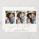 Handgeschriebene Save the Date Gold Multiple Foto Card in einem eleganten Schriftart, der ein romantisches handgeschriebenes Gefühl hervorruft. Entwickelt um drei Ihrer bevorzugten Foto für zusätzliche Anpassungen zu verwenden. Fügen Sie einfach Ihre Namen und Daten für ein wirklich personalisiertes Design hinzu. Bitte kontaktieren Sie uns unter cedarandstring@gmail.com , wenn Sie Hilfe beim Design oder den passenden Produkten benötigen.