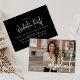 Moderne Graduiertenfeier mit ihrem horizontalen Foto auf der Vorderseite mit "Graduate" in weißem, handgeschriebenem Skriptüberlagerungen. Personalisieren Sie die Front der Foto Graduation Party einladen mit dem Namen des Absolventen, Schulname und Abschluss Jahr. Die Einladung zur Graduierungsparty kehrt um, um Ihre Party-Details in weißer Schrift mit einem soliden schwarzen Hintergrund darzustellen. Die Foto-Abschlussfeier lädt sowohl für Absolventen der Highschool als auch für Unis ein!
