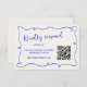 Quirky und Spaß Hochzeit RSVP Karten mit einem qr Code. Diese Antwortkarte verfügt über einen kobaltblauen, handgezogenen, eckigen Rahmen auf einem ecru Hintergrund.