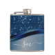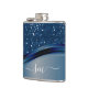 Handgeschriebener Monogram Navy Blue Metal Glitzer Flachmann